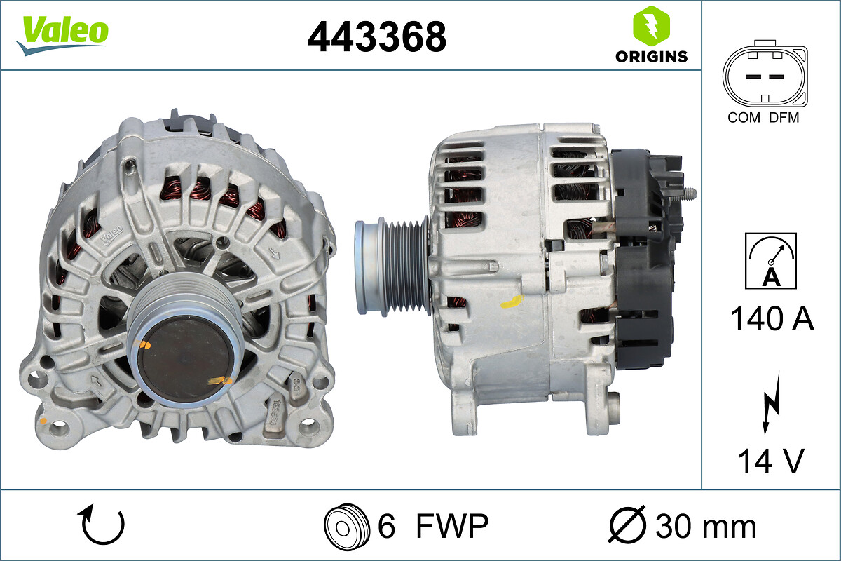 ограничение за производител: VALEOID-изпълнение на щекера: COM/LIN2i T20брой на ребрата: 6напрежение: 14волтзаряден ток на генератор: 140Аизпълнение на електрическата мрежа: за автомобили с 12V електросистемаклема: M8 B+нето тегло: 7,24kgремъчни шайби: с ремъчна шайба със свободен ходРемъчна шайба Ø: 52mm