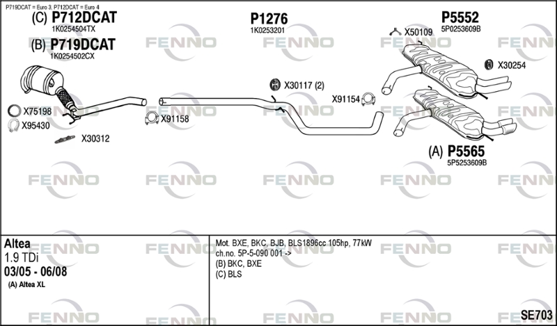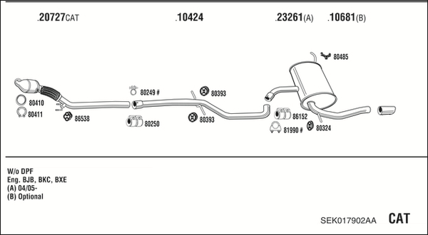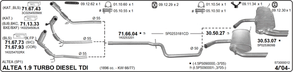 вид на катализатора: 20година на производство до: 200905код на двигателя: BXE/BXC/BJBномер на шаси (VIN) от: 5P5090001