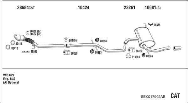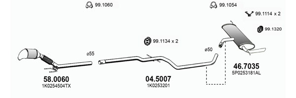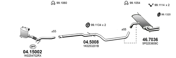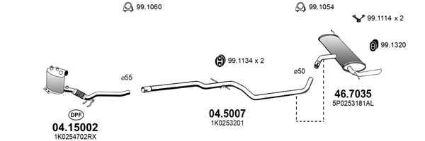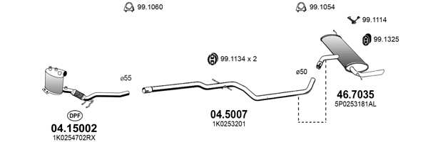 TECDOC-номер на двигател: 18268изпускателна система: за МПС с фабричен филтър за твърди частици