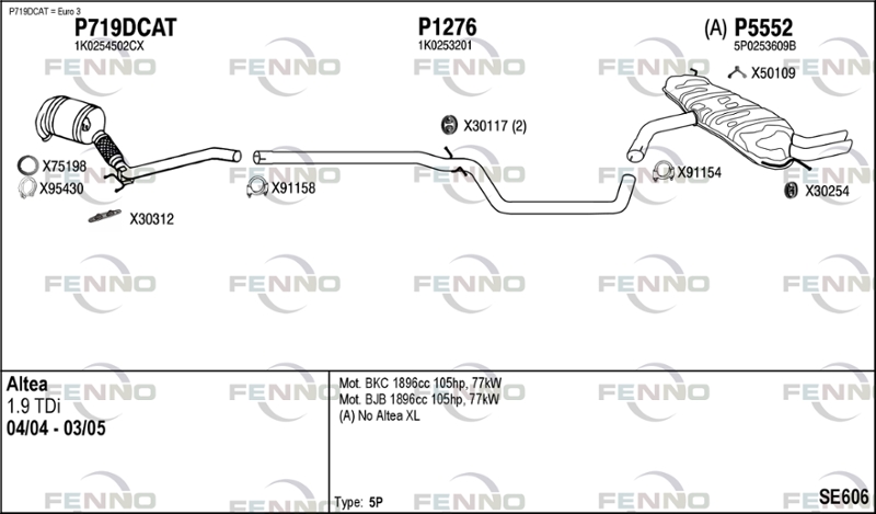година на производство до: 200806година на производство от: 200503Тип автомобил: (A) Altea XLвид на катализатора: без филтър за твърди частици