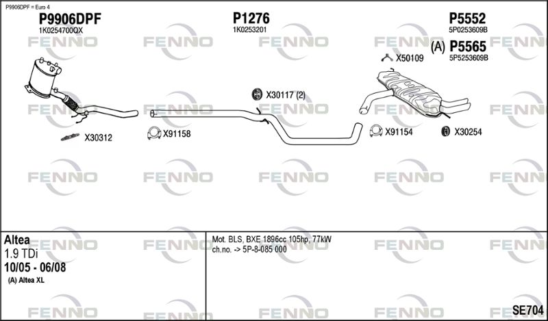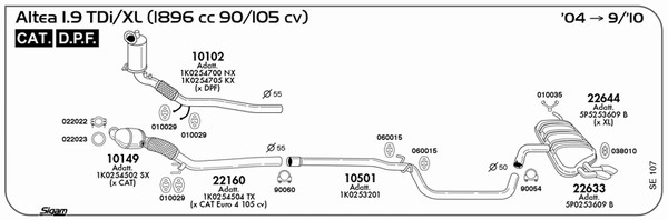 година на производство до: 200806година на производство от: 200510Тип автомобил: (A) Altea XLвид на катализатора: с филтър за сажди