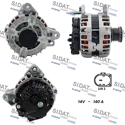 ID-изпълнение на щекера: LIN2брой на ребрата: 6вид на закрепването: двойно завъртащо рамовид на охлаждането: с въздушно охлажданенапрежение: 14волтзаряден ток на генератор: 140Аизпълнение на електрическата мрежа: за автомобили с 12V електросистемаремъчни шайби: с ремъчна шайба със свободен ходРемъчна шайба Ø: 52mm