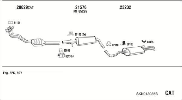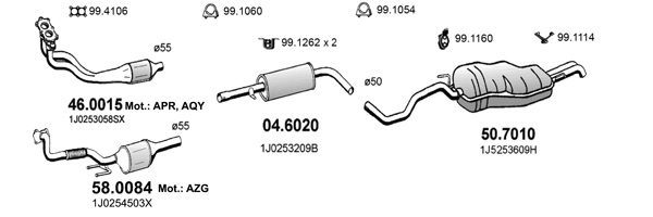 код на двигателя: AEG/APK/AQYЛиния/вариант на оборудване на автомобила: 410773Линия/вариант на оборудване на автомобила: KATЛиния/вариант на оборудване на автомобила: KAT MOT. APK/AQY, EU