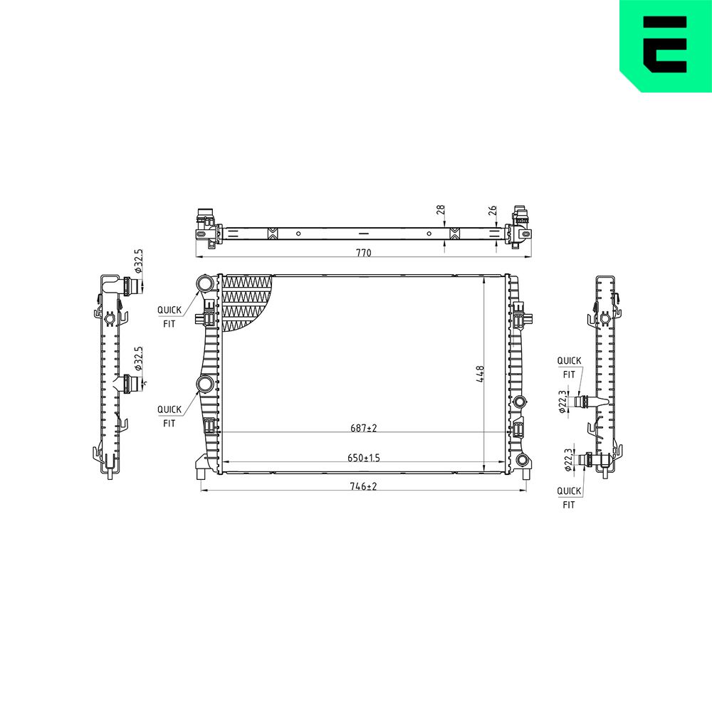 Входящ отвор Ø: 32,5mmдълбочина на мрежа: 26mmдължина на мрежа: 650mmизпълнение на охладител: запоени охлацдащи ламелиИзходящ отвор Ø: 32,5mmматериал: алуминийматериал: пластмасатип на трансмисията: ръчна скоростна кутияширина на мрежа: 439mm