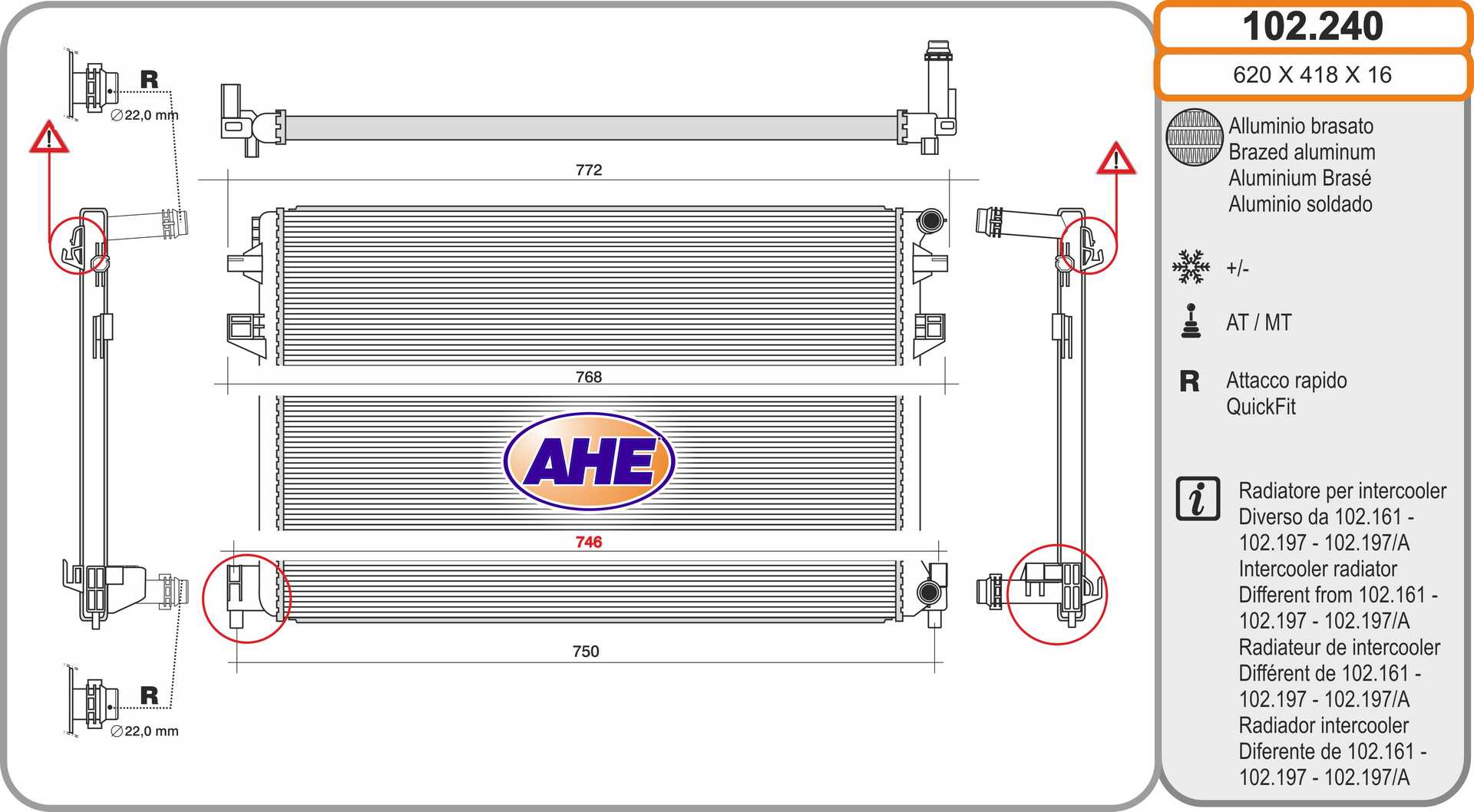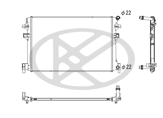 Входящ отвор Ø: 22mmдоп. артикул/доп. инфо. 2: без разширителен съддопълващ артикул /допълваща информация: без уплътнениедълбочина на мрежа: 16mmдължина на мрежа: 623mmизпълнение на охладител: запоени охлацдащи ламелиИзходящ отвор Ø: 22mmматериал на ламелите на радиатора: алуминийматериал на резервоар (охладител): пластмасаширина на мрежа: 411mm