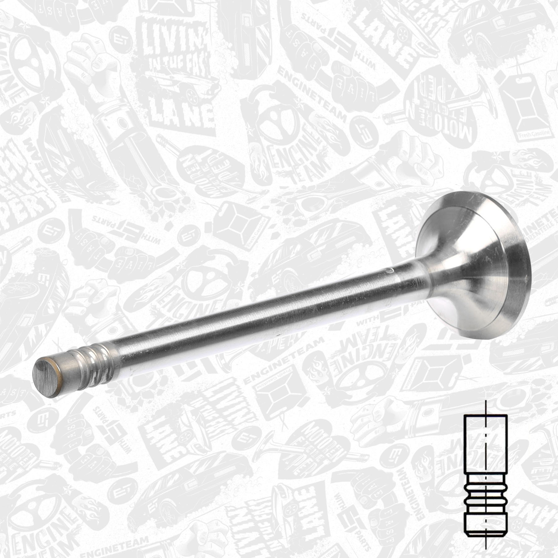 TECDOC-номер на двигател: 15368TECDOC-номер на двигател: 16238Глава на клапана Ø: 27mmСтъбло на клапана Ø: 7mmдоп. артикул/доп. инфо. 2: закален край на стеблото на клапанадоп. артикул/доп. инфо. 2: хромирано стебло на клапандоп. артикул/доп. инфо. 2: шлиц на клапан покрит с Щелитдължина: 103,7mmматериал: биметалматериал: хром-манган-никелова стоманаматериал на стеблото на клапана: хром-силициева стоманаъгъл на канала на клапана: 45°