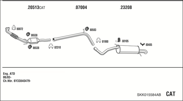 година на производство до: 200510година на производство от: 200306код на двигателя: ATDномер на шаси (VIN): From 6Y-3-840479степен на стандарта за отработени газове: E3