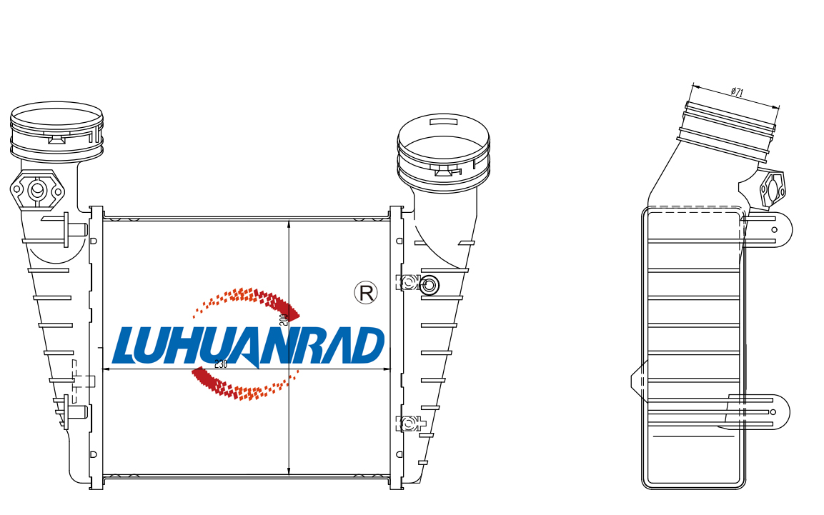 вид на охлаждането: с въздушно охлажданеВходящ отвор Ø: 66mmдопълващ артикул /допълваща информация: с принадлежностидълбочина на мрежа: 62mmдължина на мрежа: 230mmИзходящ отвор Ø: 66mmкачество: IR PLUSматериал на ламелите на радиатора: алуминийматериал на резервоар (охладител): пластмасаприсъединителна техника: QFширина на мрежа: 207mm