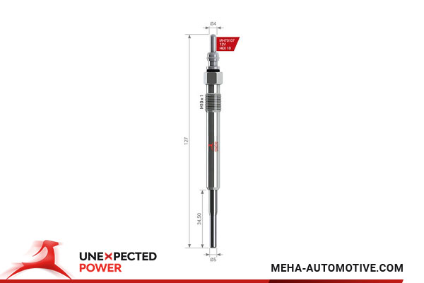дължина: 126,5mmдължина: 34,5mmнапрежение: 12волтизпълнение на подгревните свещи: с последващо подгряванеразмер външна резба: M10 x 1размер на ключ: 10