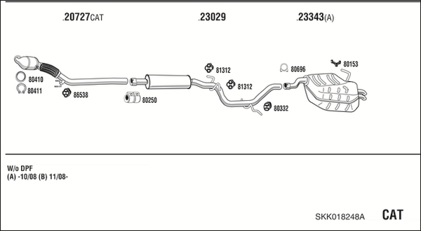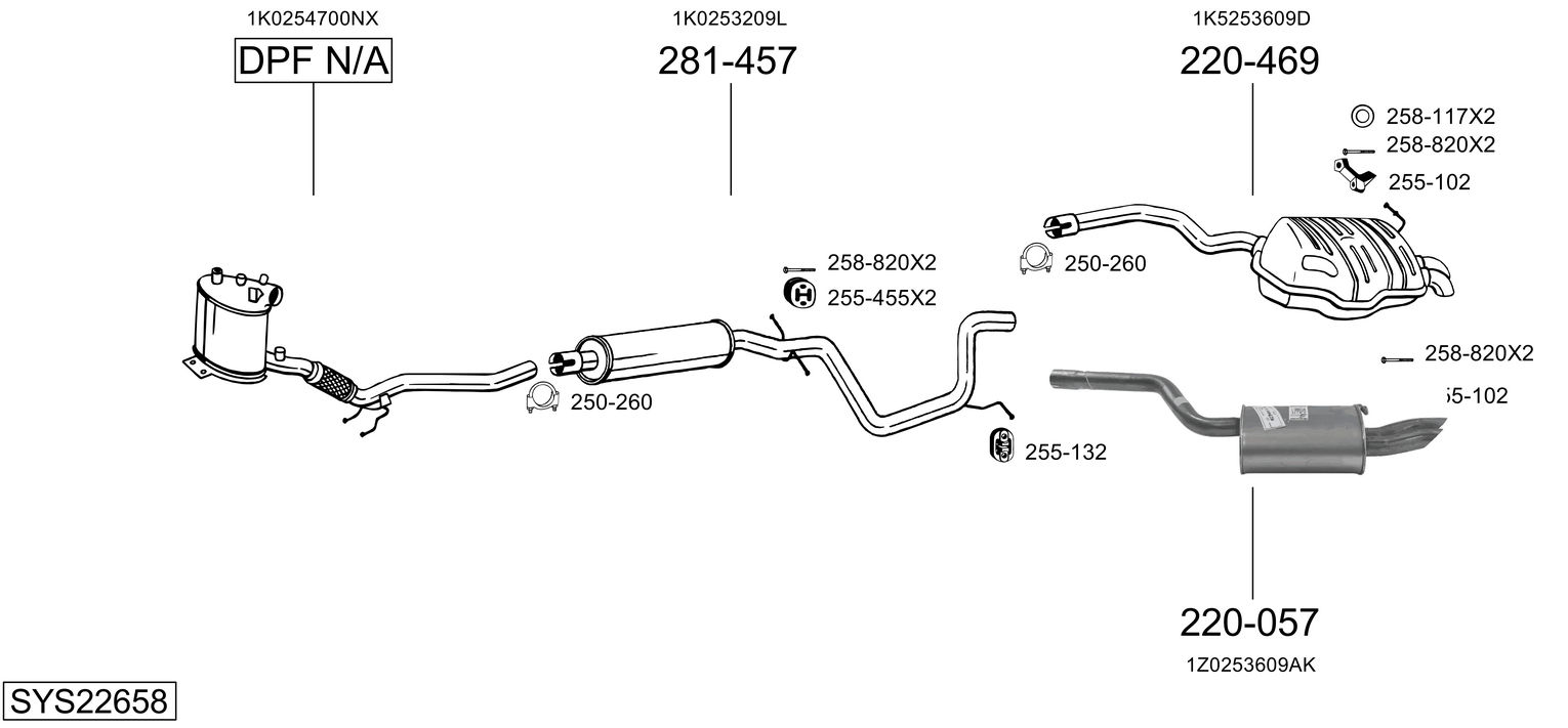TECDOC-номер на двигател: 19091изпускателна система: за МПС с фабричен филтър за твърди частици
