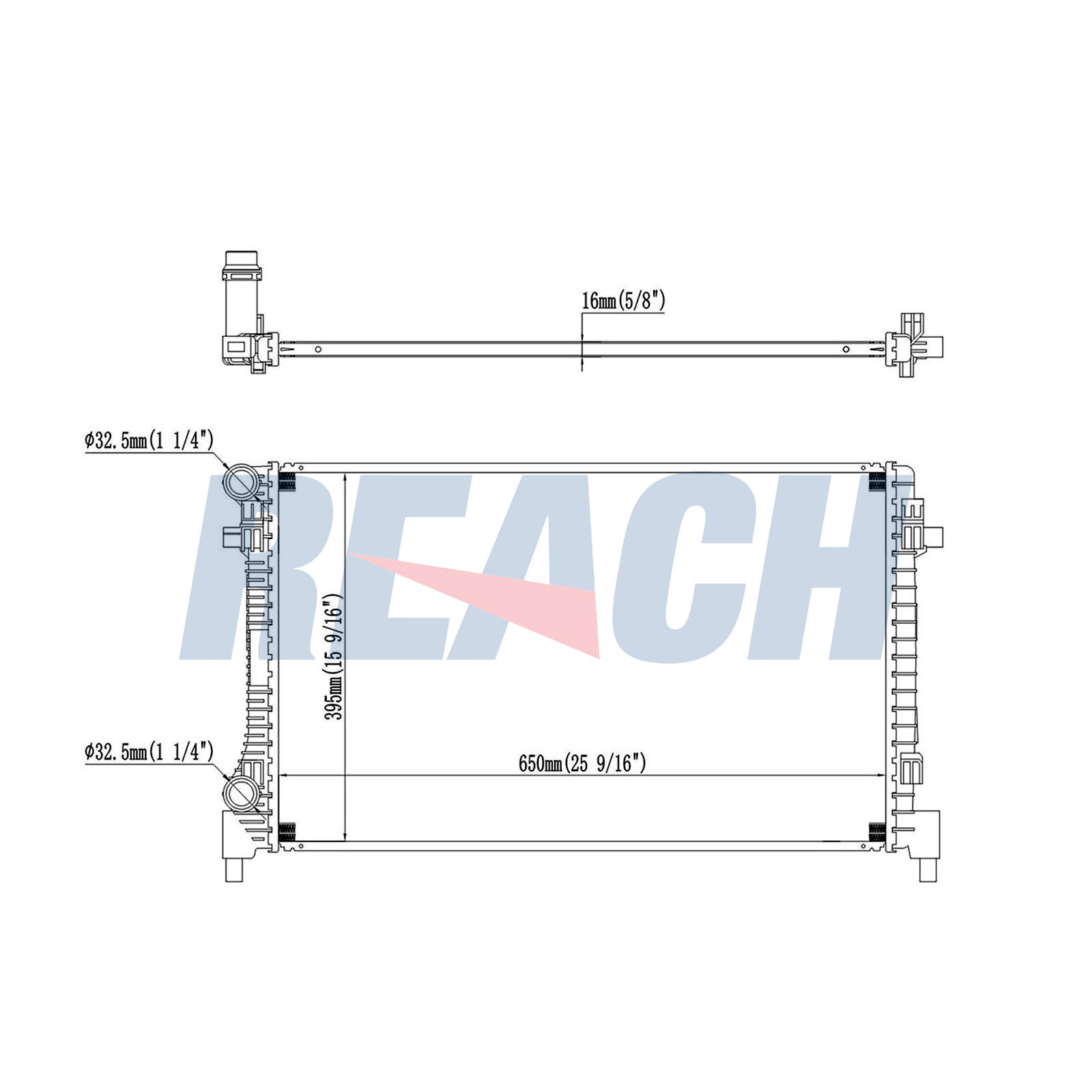 дълбочина на мрежа: 34mmдължина на мрежа: 650mmизпълнение на охладител: механично съединени охлаждащи ламелиматериал на ламелите на радиатора: алуминийматериал на резервоар (охладител): пластмасаширина на мрежа: 416mm
