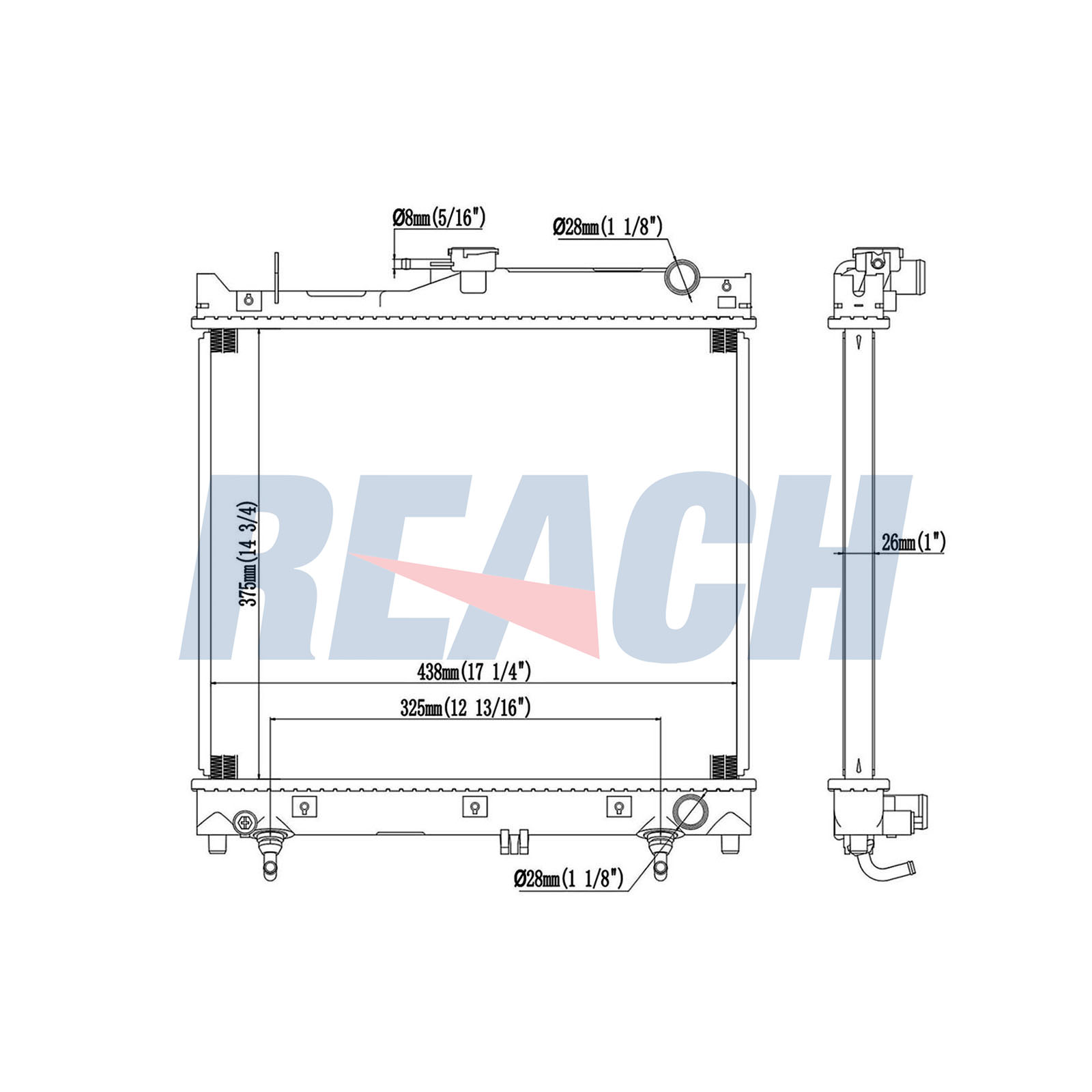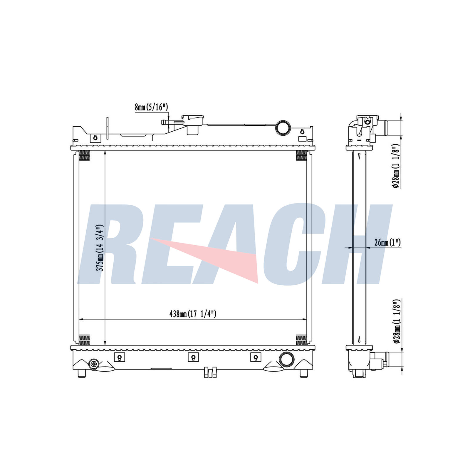Вход Ø 1: 28mmИзход Ø 1: 28mmдълбочина на мрежа: 26mmдължина на мрежа: 375mmизпълнение на охладител: запоени охлацдащи ламеликачество: ALTERNATIVOматериал: алуминийматериал: пластмасаширина на мрежа: 438mm