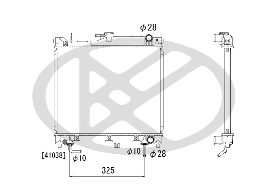 обурудване на автомобила: за автомобили с 6V електрическа мрежатип на трансмисията: 17Входящ отвор Ø: 28mmдълбочина на мрежа: 25mmдължина на мрежа: 375mmизпълнение на охладител: запоени охлацдащи ламелиИзходящ отвор Ø: 28mmматериал на ламелите на радиатора: алуминийматериал на резервоар (охладител): пластмасаширина на мрежа: 440mm