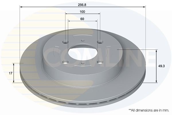 страна на монтаж: предна осброй на дупките: 2брой на дупките: 4вид на спирачния диск: с вътрешно вентилираневисочина: 49,3mmвъншен диаметър: 257mmдебелина на спирачния диск: 17mmДиаметър на кръговата стъпка Ø: 100mmмин. дебелина: 15mmповърхност: с покритиецентриращ диаметър: 60mm