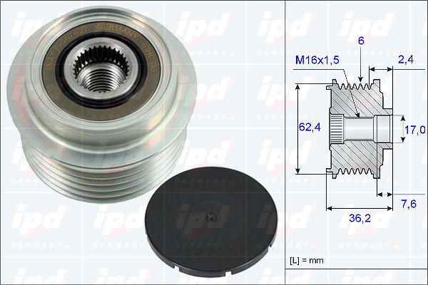 брой на ребрата: 6външен диаметър: 62,40mmвътрешен диаметър: 17mmдебелина: 36,20mmремъчни шайби: с ремъчна шайба със свободен ход