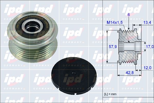 брой на ребрата: 6външен диаметър: 57,90mmвътрешен диаметър: 17mmдебелина: 42,80mmремъчни шайби: с ремъчна шайба със свободен ход