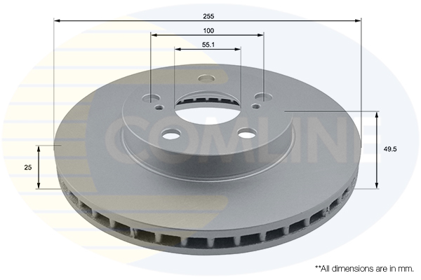 страна на монтаж: предна осстрана на производство на автомобила: 32брой на дупките: 2брой на дупките: 4вид на спирачния диск: с вътрешно вентилираневисочина: 49,5mmвъншен диаметър: 255mmдебелина на спирачния диск: 25mmДиаметър на кръговата стъпка Ø: 100mmмин. дебелина: 24mmповърхност: с покритиецентриращ диаметър: 55,1mm