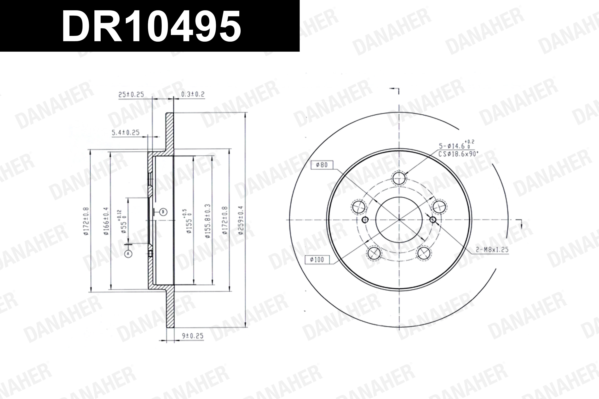 страна на монтаж: задна осброй на дупките: 5вид на спирачния диск: плътенвисочина: 30,5mmвъншен диаметър: 259mmдебелина на спирачния диск: 9mmДиаметър на кръговата стъпка Ø: 100mmмярка на резбата 1: 14,6мярка на резбата 2: M8центриращ диаметър: 55mm