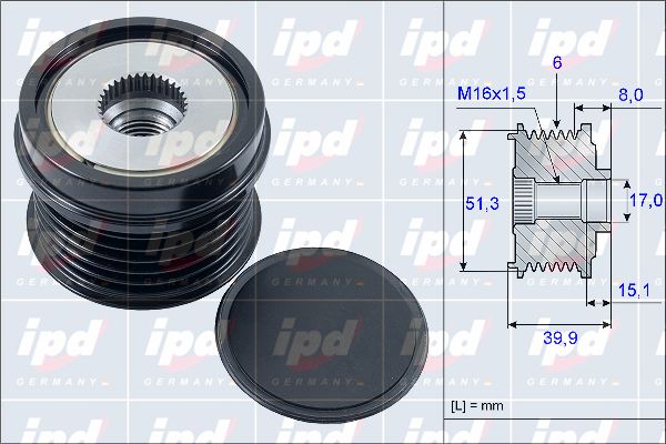 брой на каналите: 6външен диаметър: 57mmвътрешен диаметър: 17mmдоп. артикул/доп. инфо. 2: с капачкамонтажна дълбочина: 14,5mmза номер на производител: 920999мярка на резбата: M16x1,5ограничение за производител: Valeoпосока на въртене: въртене по посока на часовниковата стрелкаДистанция от ремъчната шайба до генератора: 8mmРемъчна шайба Ø: 52mmширина: 36,7mm