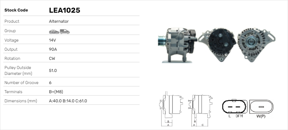 брой на каналите: 6напрежение: 12волтзаряден ток на генератор: 90Аклема: L-Wклема: M8ремъчни шайби: с многоремъчна шайбаРемъчна шайба Ø: 50,0mm