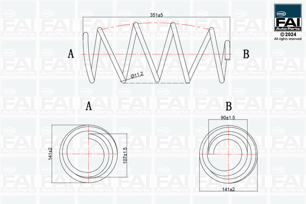 страна на монтаж: предна осброй на навивките: 5,3външен диаметър: 141mmдиаметър на жичките: 11,2mmдължина: 351mmформа на пружина: спирална пружина с еднаква дебелина на метала
