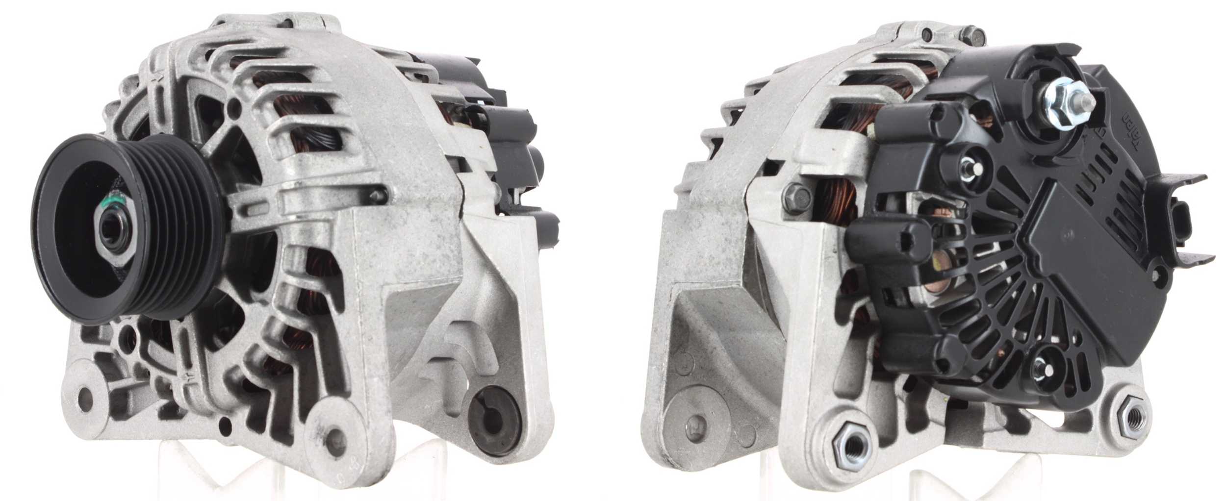 брой на дупките за закрепване: 4брой на ребрата: 7брой на резбовите дупки: 2версия: GSнапрежение: 12волтзаряден ток на генератор: 150Аклема: M8ограничение за производител: BOSCHремъчни шайби: с ремъчна шайба със свободен ходРемъчна шайба Ø: 64mmтегло: 6700грам