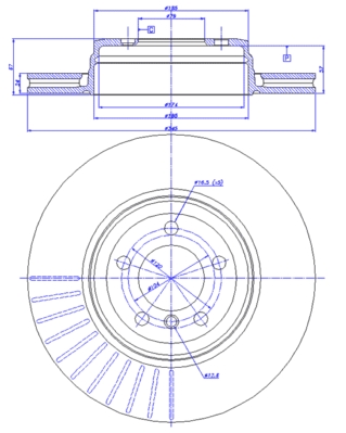 страна на монтаж: задна осброй на дупките: 5вид на спирачния диск: вентилиранвисочина: 67,0mmвъншен диаметър: 345,0mmвътрешен диаметър: 185,0mmдебелина на спирачния диск: 24,0mmОтвор Ø: 16,5mmДиаметър на кръговата стъпка Ø: 120,0mmмин. дебелина: 22,4mmповърхност: с покритиепреработка: високовъглероднацентриращ диаметър: 79,0mm
