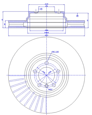 брой на дупките 1: 5брой на дупките 2: 1вид на спирачния диск: вентилиранвисочина: 81mmвъншен диаметър: 374mmвътрешен диаметър: 187mmдебелина на спирачния диск: 36mmмин. дебелина: 34,4mmпреработка: високовъглероднастрана на монтаж: предна осцентриращ диаметър: 79mm