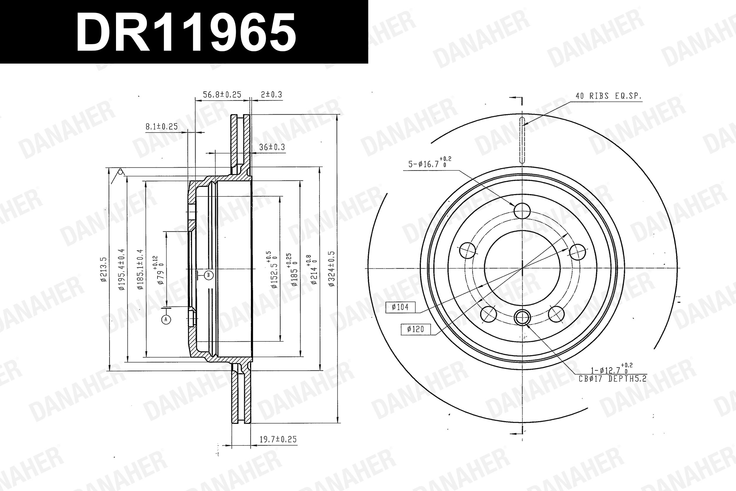 страна на монтаж: задна осброй на дупките: 5вид на спирачния диск: вентилиранвисочина: 67mmвъншен диаметър: 324mmдебелина на спирачния диск: 20mmБарабан Ø: 185mmДиаметър на кръговата стъпка Ø: 120mmмин. дебелина: 18,4mmмярка на резбата: 16,5повърхност: боядисанцвят: черенцентриращ диаметър: 79mm