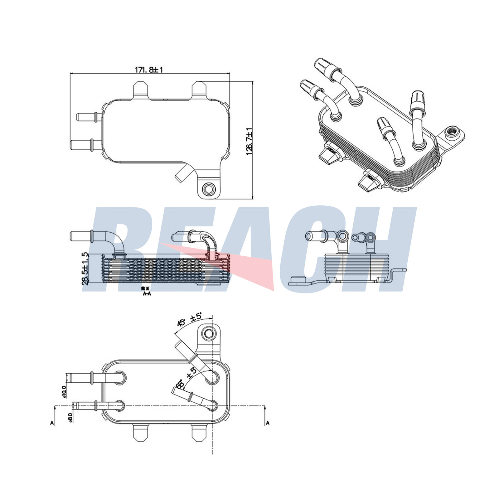 брой на ребрата: 7вид на охлаждането: с водно охлажданедоп. артикул/доп. инфо. 2: без филтърдопълващ артикул /допълваща информация: без корпус маслен филтърдопълващ артикул /допълваща информация: без уплътнениядълбочина на мрежа: 59mmдължина на мрежа: 178mmИзходящ отвор Ø: 8mmматериал: алуминийширина на мрежа: 128mm