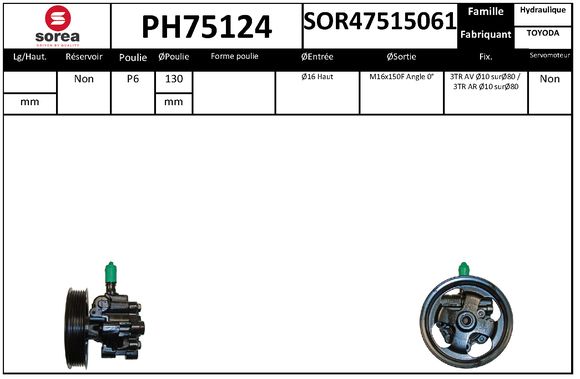 брой на каналите: 6вид на експлоатация: хидравличнодоп. артикул/доп. инфо. 2: запресована ремъчна шайбаза производител на кормилно управление: TOYODAремъчни шайби: с ремъчна шайбаРемъчна шайба Ø: 130mm