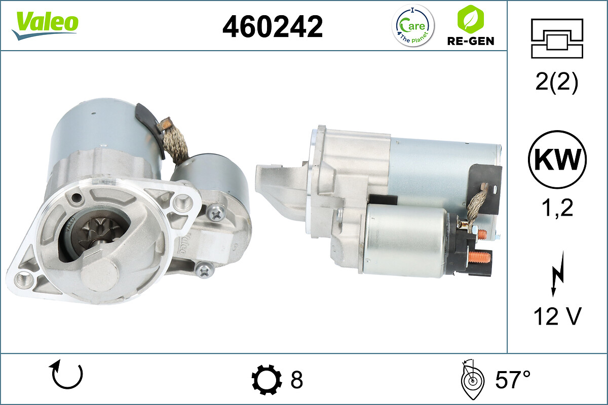ограничение за производител: VALEOброй на дупките за закрепване: 2брой на зъбите: 8версия: M60082напрежение: 12волткачество: STANDARD LINEстартова мощност: 1,2киловатпосока на въртене: въртене по посока на часовниковата стрелка