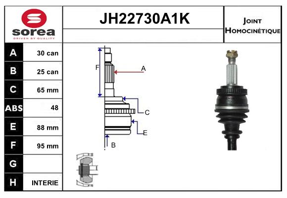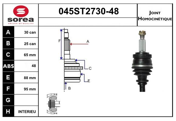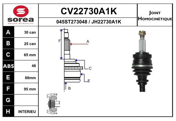 тип на трансмисията: 1тип на трансмисията: 17брой на зъбите на ABS-пръстен: 48вид на шарнира: сферично каре (за предаване на постоянно движение)външни зъби от страна на колелото: 30вътрешни зъби от страната на колелото: 25ABS пръстен Ø: 88mmдиам. на гарн.: 65mmтриподна ролка-диаметър: 89mmдължина: 164mmМатериал маншон: NBR (Нитрил-Бутадиен-Каучук)мярка на резбата: M22x1.50страна на монтаж: от страната на колелото