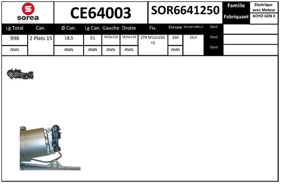 вид на експлоатация: електрическидължина: 995mmза производител на кормилна кутия: KOYO - GEN 2ляв/десен волан: за автомобили с ляв воланразмер на резбата на аксиалния шарнир: M16x1.50