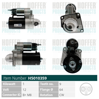 нова част: нова частобурудване на автомобила: за автомобили без функция старт/стопограничение за производител: HITACHIброй на дупките за закрепване: 3брой на зъбите: 10Фланец Ø: 64mmнапрежение: 12волткачество: +Line Originalклема: B+ (M8)стартова мощност: 1,0киловатпосока на въртене: въртене по посока на часовниковата стрелкастойка за закрепване: 38°