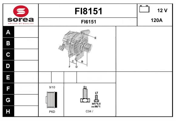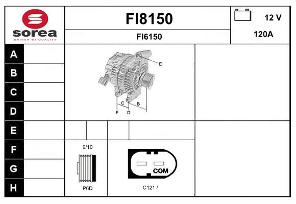 брой на дупките за закрепване: 4брой на каналите: 6напрежение: 12волтзаряден ток на генератор: 120Аклема: B+ M8ремъчни шайби: с ремъчна шайба със свободен ходРемъчна шайба Ø: 54mm