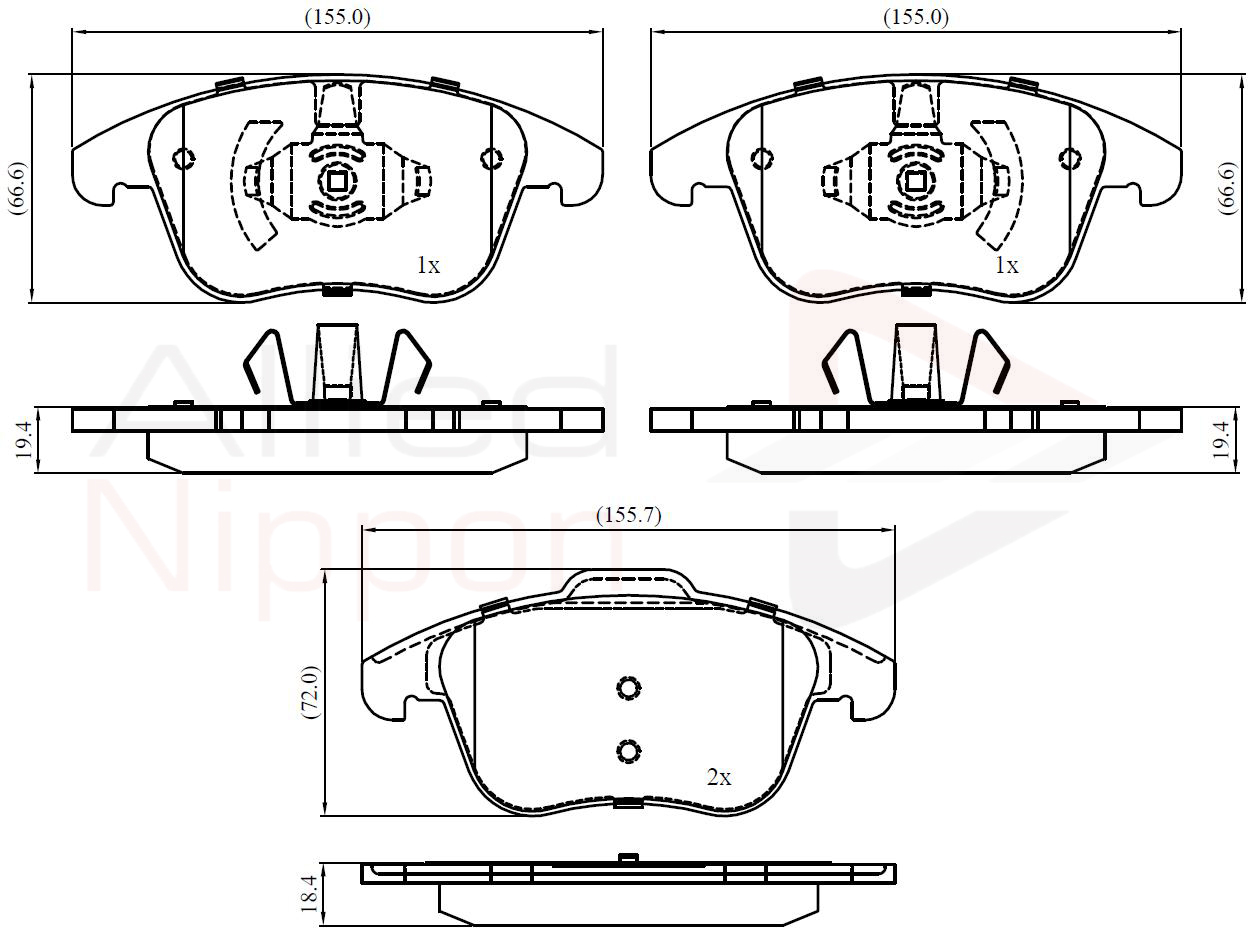 страна на монтаж: предна освисочина 1: 75,9mmвисочина 2: 66,7mmдебелина 1: 19mmдебелина 2: 20mmдължина 1: 155,8mmдължина 2: 155,2mmконтактен датчик за износване: с акустично предупреждение за износванеограничение за производител: ATE