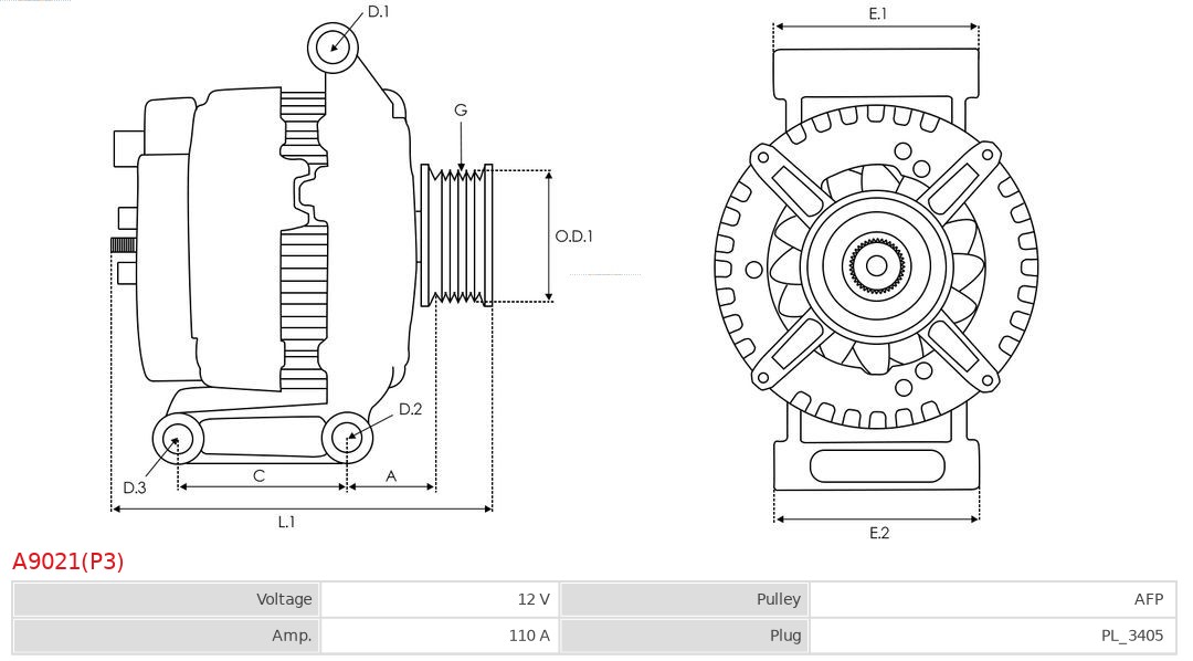 година на производство от: 200210код на двигателя: D2FAID-изпълнение на щекера: PL81брой на каналите: 7Ø: 59mmнапрежение: 12волтзаряден ток на генератор: 110А