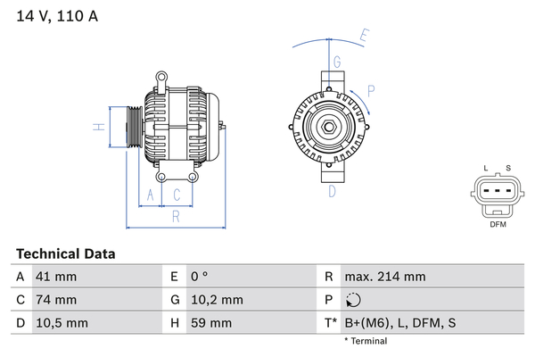брой на каналите: 7генератор заряден ток от: 53Анапрежение: 14волтзаряден ток на генератор: 110Агенератор-заряден ток до: 110Апосока на въртене: въртене по посока на часовниковата стрелкаремъчни шайби: с ремъчна шайба със свободен ходРемъчна шайба Ø: 59mm