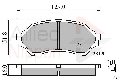 WVA-номер: 23490височина: 52,3mmдебелина: 15,2mmдължина: 123mmконтролен знак за преглед: ECE R90 APPROVEDстрана на монтаж: предна ос