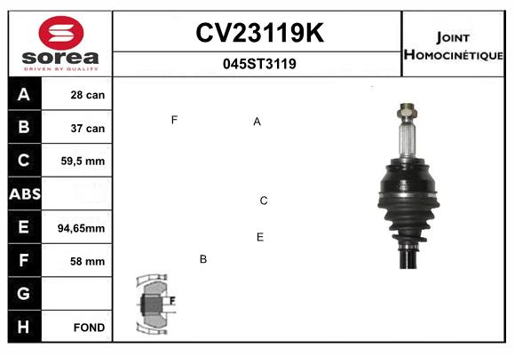 страна на монтаж: задна осстрана на монтаж: от страната на трансмисиятатип на трансмисията: 23тип на трансмисията: 7външни зъби откъм диференциал: 23вътрешни зъби от страната на диференциала свързване с трансм: 26диам. на гарн.: 35mmдължина: 160mm