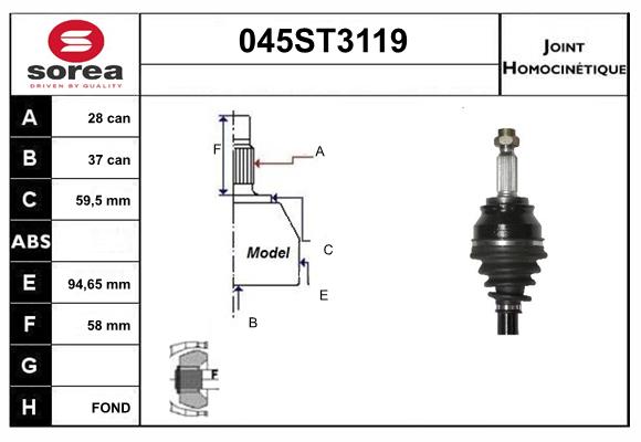 страна на монтаж: на предната ос отлявострана на монтаж: от страната на трансмисиятатип на трансмисията: 23външни зъби откъм диференциал: 30вътрешни зъби от страната на диференциала свързване с трансм: 36диам. на гарн.: 43mmдължина: 178,5mm