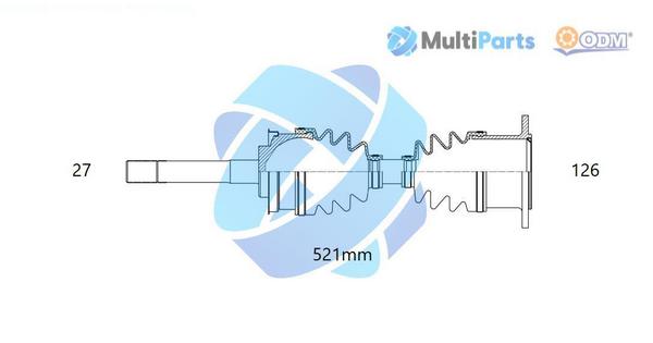страна на монтаж: на предната ос отдяснострана на монтаж: на предната ос отлявотип на трансмисията: 1тип на трансмисията: 17външни зъби от страна на колелото: 27диаметър на шарнира от страна на скоростната кутия: 126mmдължина: 521mm