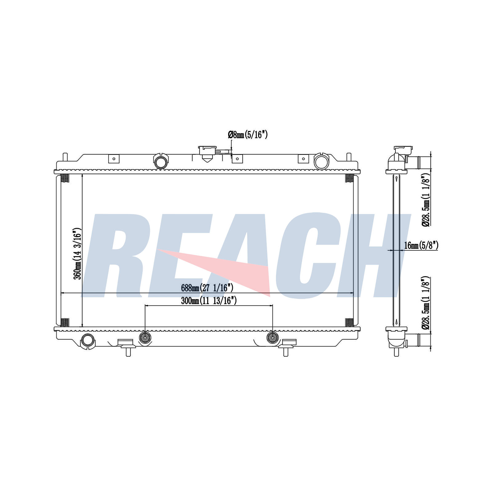 Вход Ø 1: 28mmИзход Ø 1: 28mmдълбочина на мрежа: 27mmдължина на мрежа: 685mmизпълнение на охладител: запоени охлацдащи ламеликачество: Premiumматериал: алуминийматериал: пластмасаограничение за производител: CALSONICширина на мрежа: 360mm