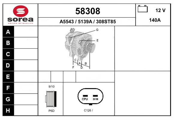 ID-изпълнение на щекера: CPA0373версия: GSнапрежение: 12волтзаряден ток на генератор: 140Аограничение за производител: VALEOпроизводител: VAUXHALL