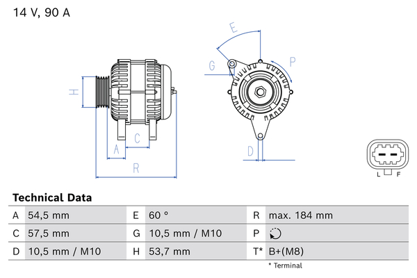ID-изпълнение на щекера: L-DFM (Plug 248)брой на ребрата: 5версия: 554293RIKнапрежение: 12волтзаряден ток на генератор: 130Аклема: M8 B+Ремъчна шайба Ø: 54mm