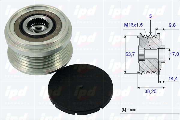 брой на ребрата: 5външен диаметър: 53,70mmвътрешен диаметър: 17mmдебелина: 38,25mmремъчни шайби: с ремъчна шайба със свободен ход