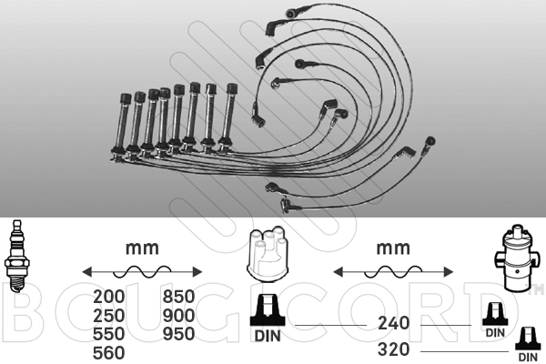 диаметър на кабела: 5mmдистрибутор на запалването/ палец: изпълнение на конектор DINдължина 1: 240mmдължина 1, зап. кабел запалителна бобина към дистрибутора: 230mmдължина 2: 290mmдължина 2, зап. кабел запалителна бобина към дистрибутора: 310mmДължина 3: 620mmДължина 4: 630mmДължина 5: 765mmДължина 6: 770mmдължина 7: 900mmдължина 8: 900mmзапалителен кабел: резистивен запалителен кабелзапалителен кабел: тип на връзка SAEзапалителна бобина: изпълнение на конектор DINколичество: 10