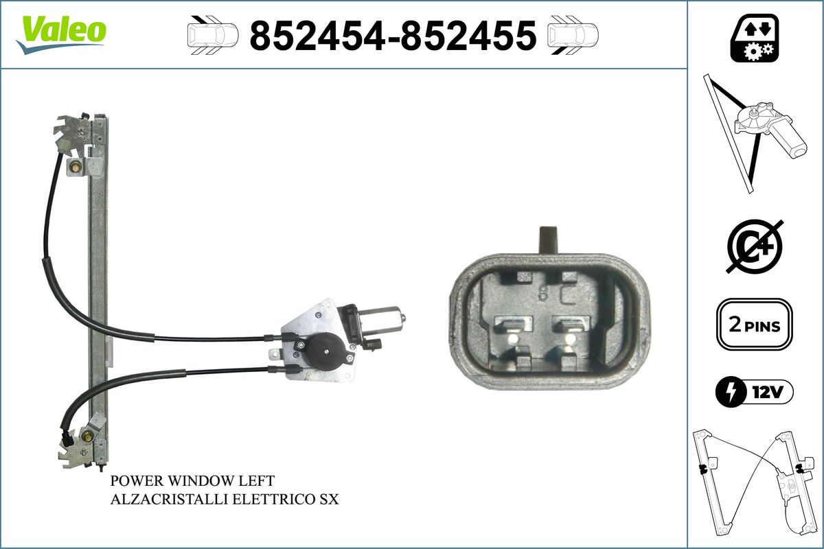 брой на тестовите контакти (пинове): 2вид на експлоатация: електрическивключваща функция: без функция комфортдопълващ артикул /допълваща информация: с електродвигателстрана на монтаж: отпред отлявостъклоподемник: стъклоповдигач с една релса
