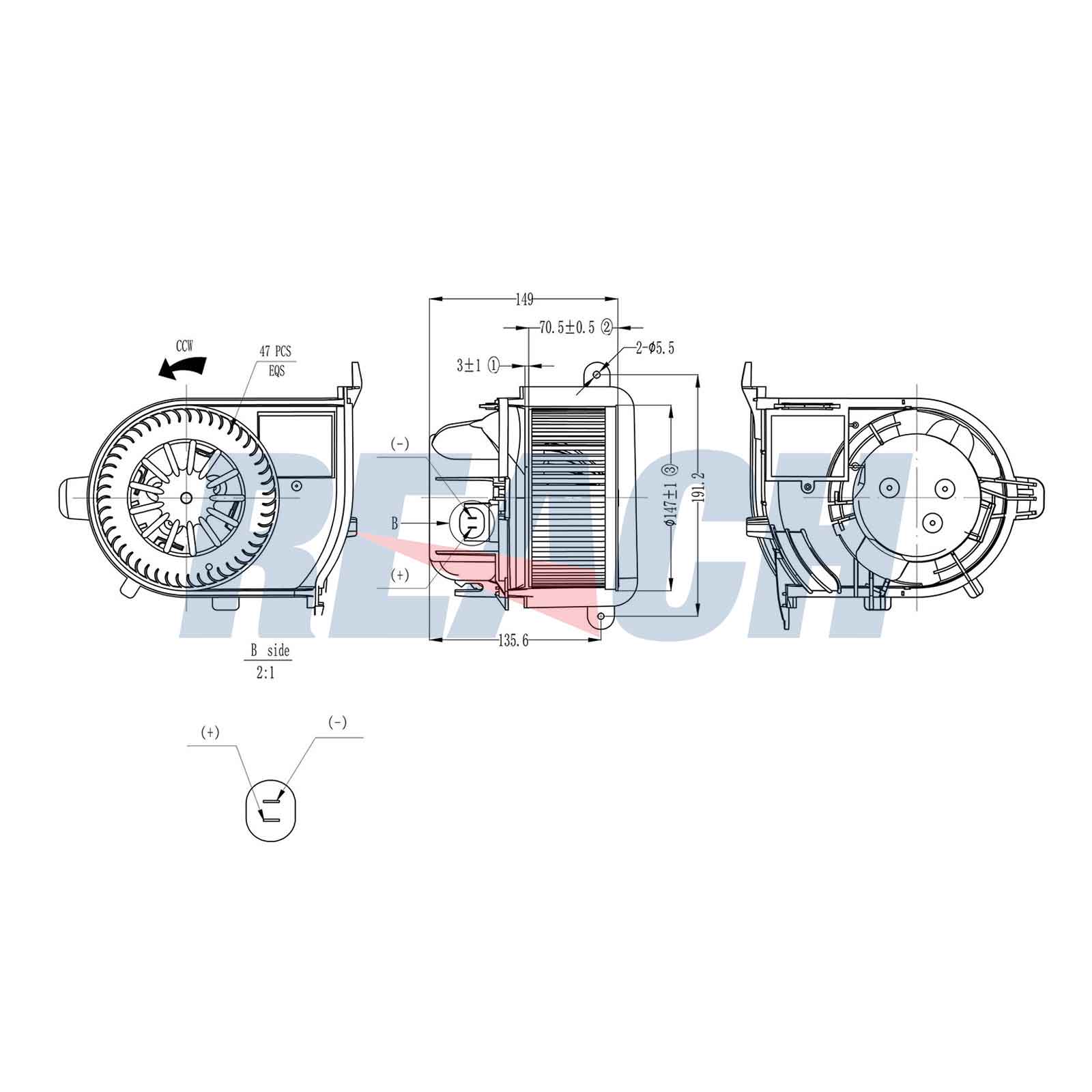 обурудване на автомобила: 50брой на щепселните контакти: 2-щифтенØ: 147mmдоп. артикул/доп. инфо. 2: без съпротивлениенапрежение: 12волтмощност: 216Wпосока на въртене: въртене по посока срещу часовниковата стрелка